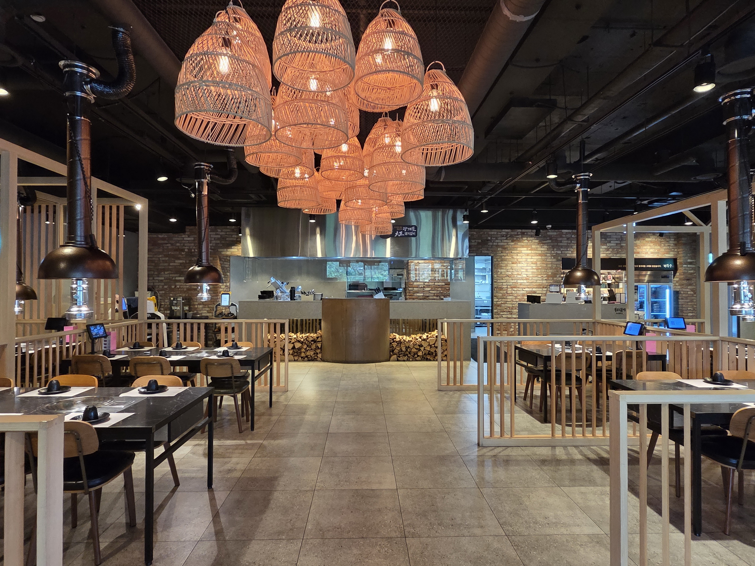 예상했던 대로 2층의 매장은 엄청 넓다. 목재 구조물로 칸막이를 하고 좌석과 좌석 사이가 넓어 후련한 느낌을 준다.