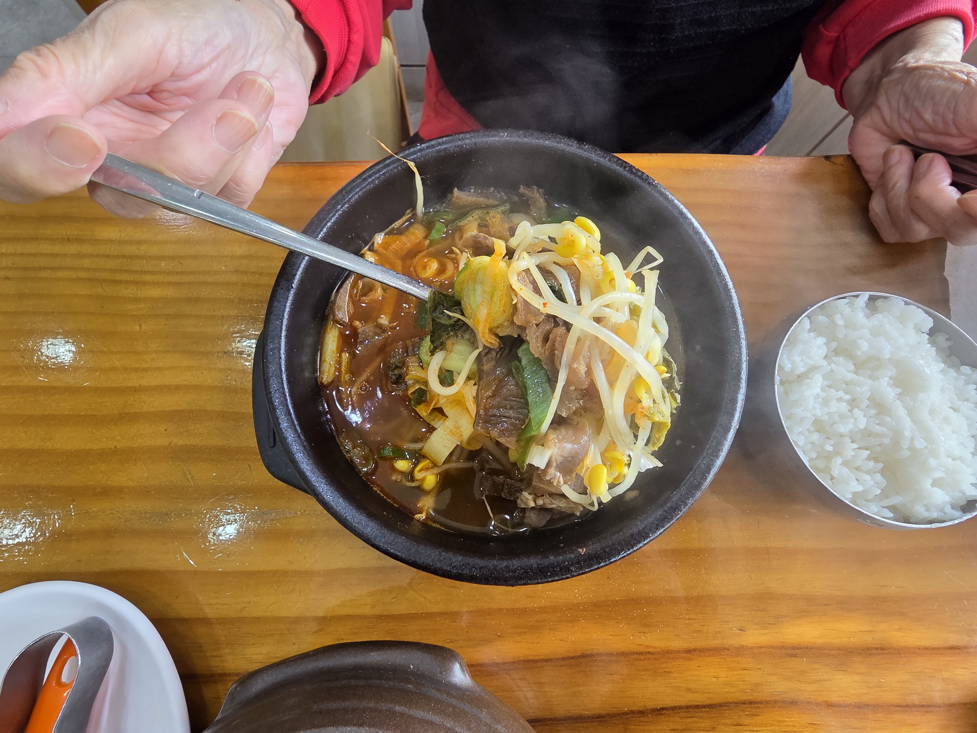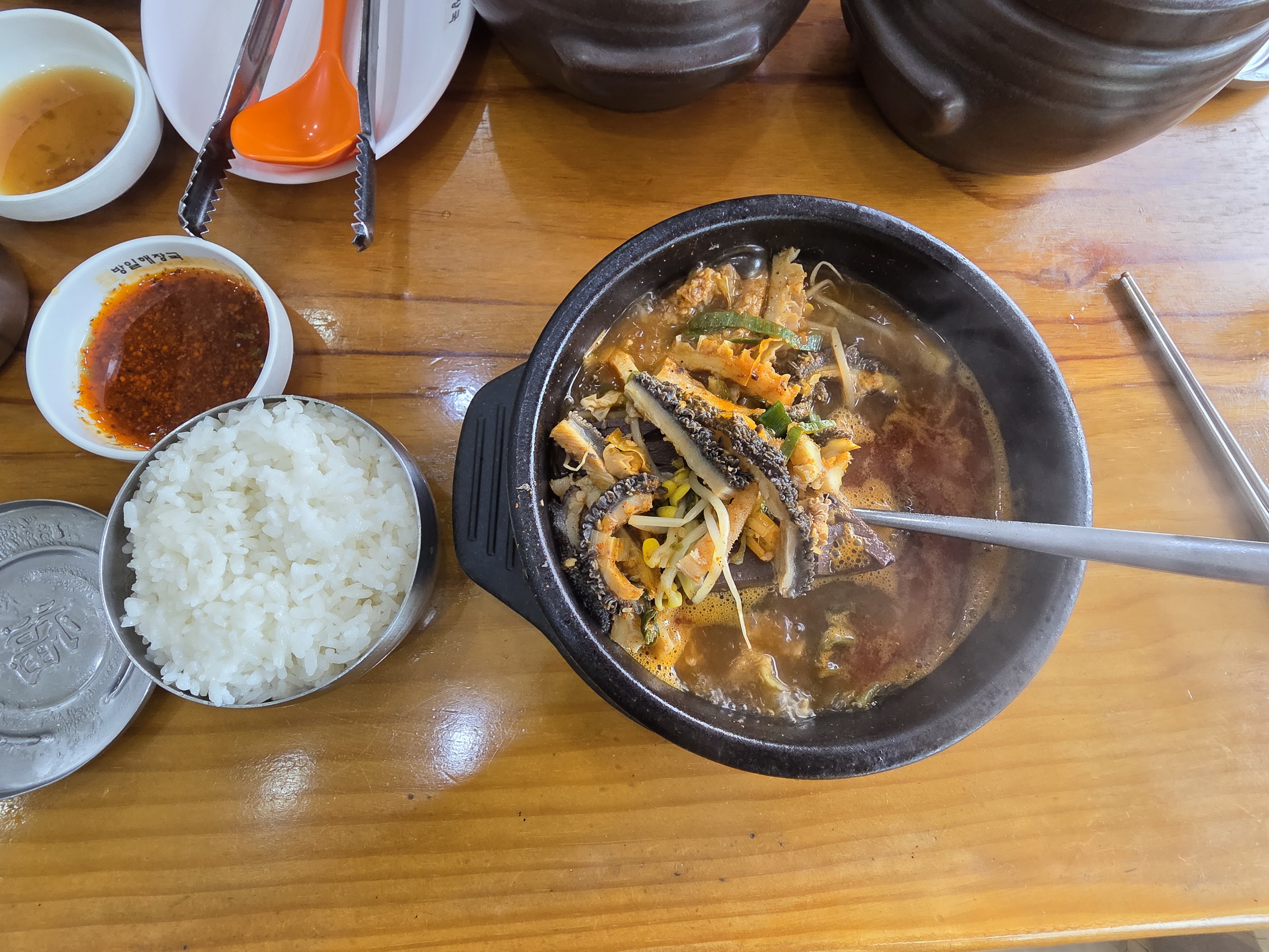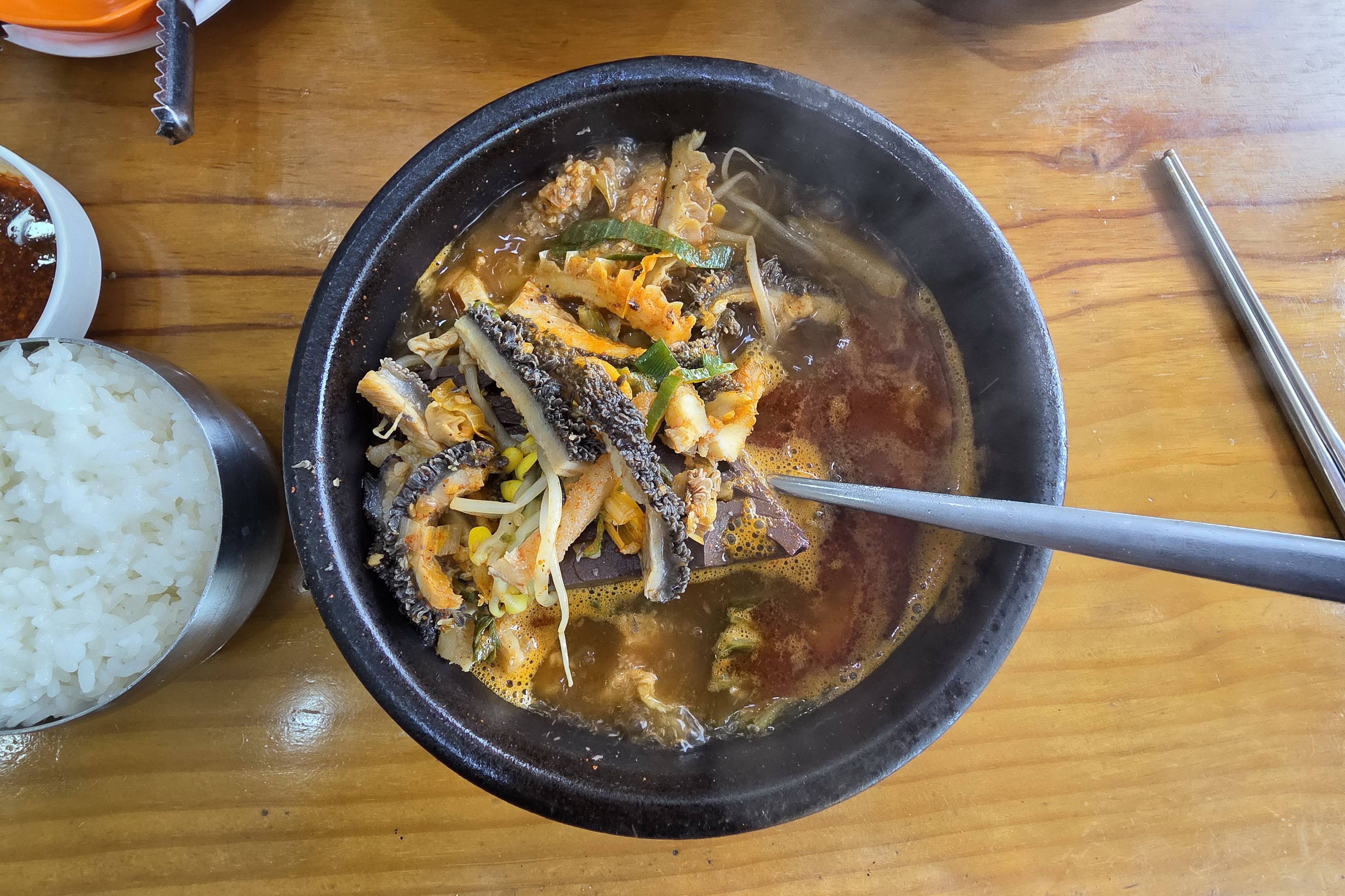 좀 기다리니 주문한 음식이 나왔다. 먼저 공기밥 한 그릇과 해장국이다.