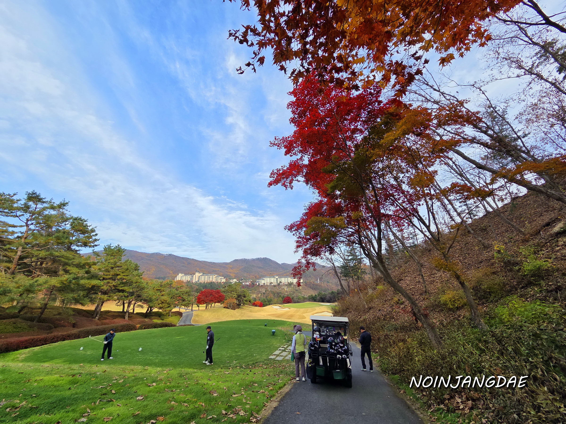 오늘이 계곡회의 금년도 마지막 라운딩이라는 걸 하늘도 알아주는지 하늘의 구름도 변화무쌍하다. 홀을 지날 때마다 새로운 모습으로 우리를 맞아준다. 늦가을 남은 단풍도 마지막 정열을 뿜어내는 듯 특별히 더 붉다.