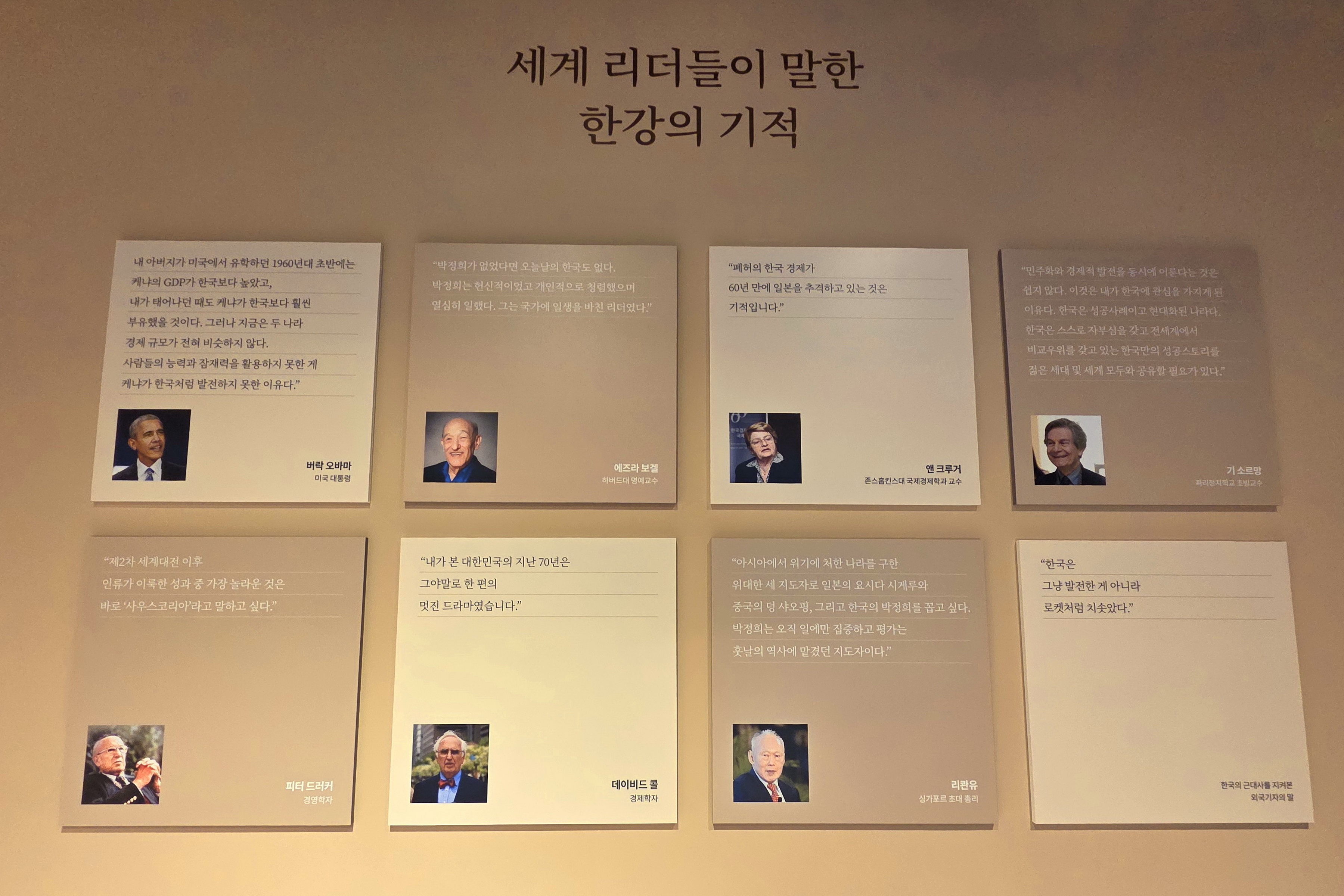 박대통령의 생애와 집권 18년 동안의 업적이 잘 정리되어 있다. 누구나 삶에 있어 공과 과가 있게 마련이지만, 박정희 대통령이 없었다면 과연 오늘의 번영된 대한민국이 존재할 것인가 생각해 볼 일이다. 박정희 대통령 이후의 집권자들과 비교해 볼 때 너무나 현격한 차이를 느낀다. 그런데도 이미 만들어진 박대통령의 동상을 세우지 못하고 방치되어 있다는 현실이 안타깝다.