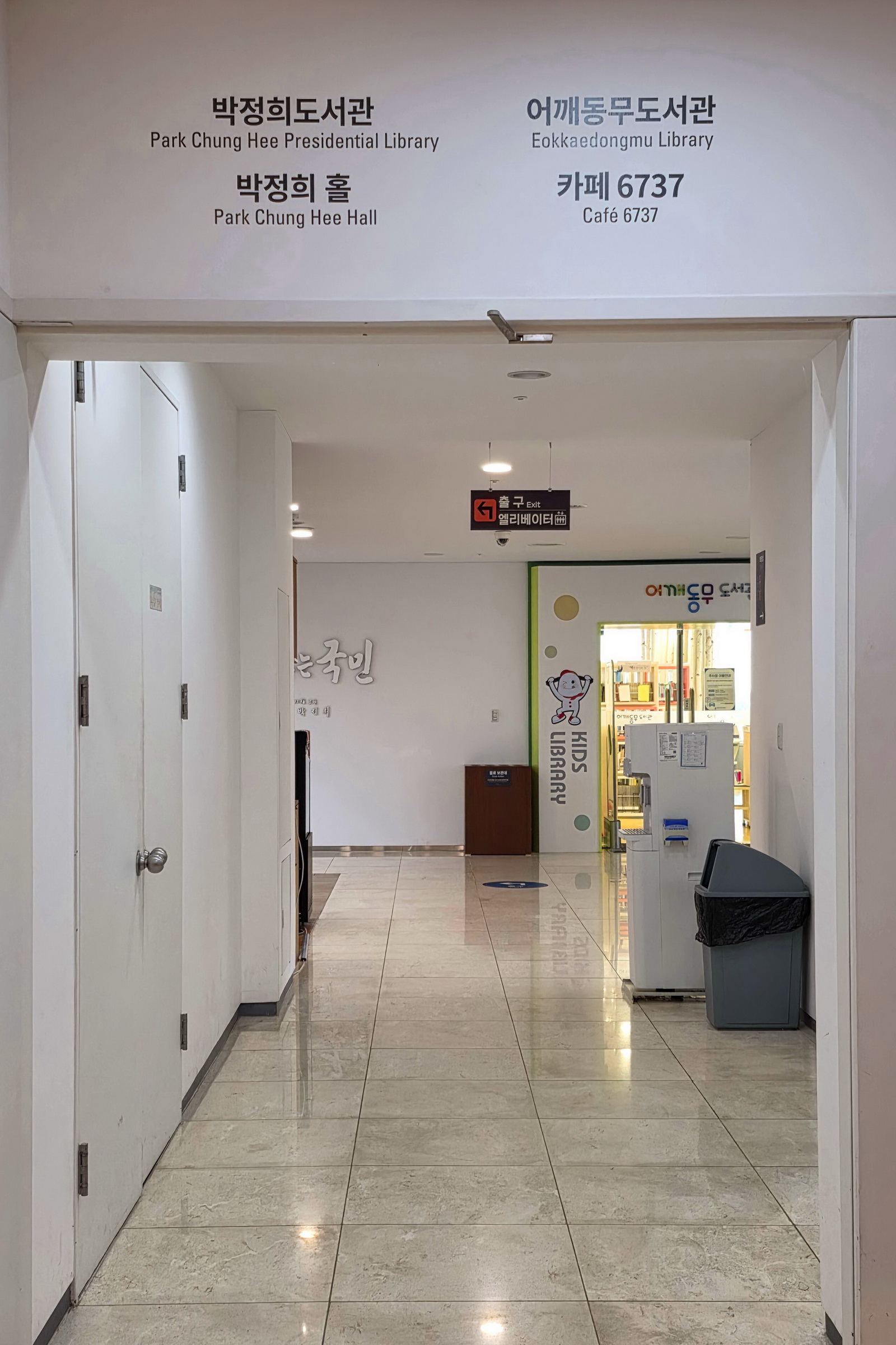 3 전시실을 나오면 맞은편에 어깨동무도서관이 있고, 그 옆으로 박정희도서관이 있다.