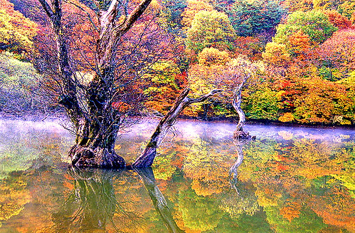 청송군 주왕산면 이전리에서 약 3km 지점에 있는 주산지는 길이 100m, 폭 50m, 둘레 1km, 수심 7.8m의 크지 않은 저수지이지만, 아무리 가뭄이 심해도 물이 마르지 않는다. 주산지는 물을 담기에 유리한 큰 사발 모양의 지형을 이루고 있다.
