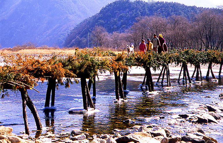 특징 : 매년 마을 주민들이 직접 힘을 모아 다리를 놓는 전통방식을 고수한다. 평창강 물줄기가 마을을 휘감아 도는 평화로운 풍경이 일품이다.